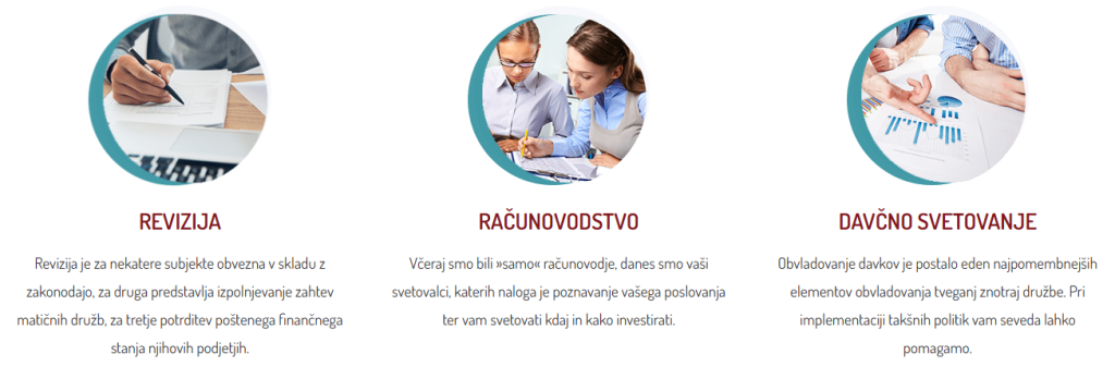 • izdelava računovodskih izkazov in davčnih obračunov,